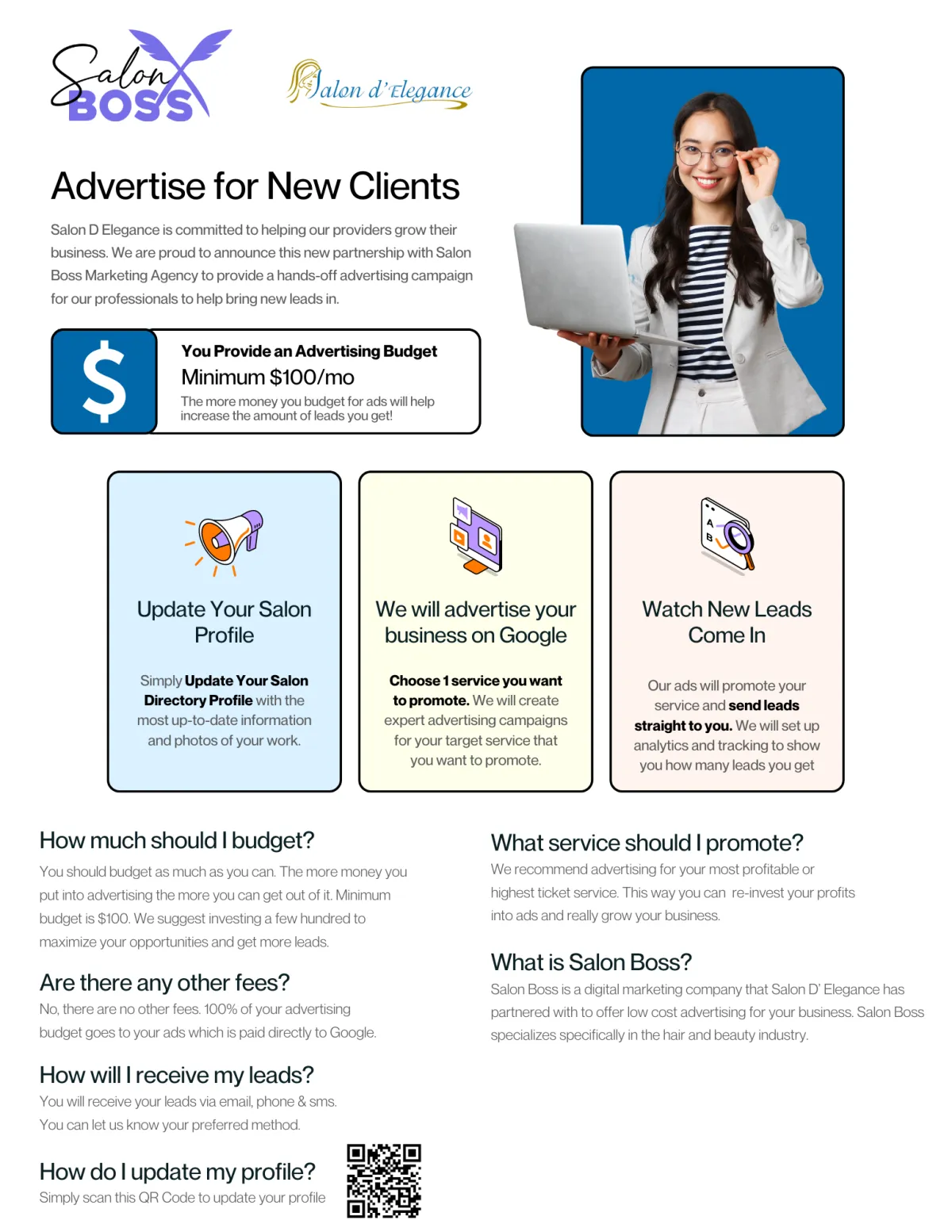 Salon D Elegance is excited to partner with Salon Boss Marketing Agency to help you grow your business with a hands-off advertising campaign.